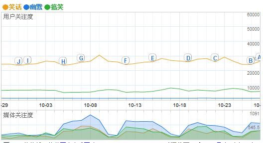 對于這個問題,誰都不得不考慮一下,因為它太重要了。在title中設置一些關鍵字,如笑話、幽默、搞笑圖片等。對于幽默笑話類的搜索,baidu的比重最大,GG的相對較弱。利用百度指數(shù)、GG關鍵字工具等,可以比較一下各個關鍵詞在搜索中的比重,比如下圖是百度指數(shù)對笑話、幽默、搞笑這三個詞的比較: