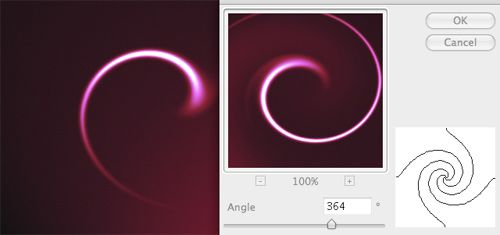 使用旋轉(zhuǎn)扭曲濾鏡會產(chǎn)生輻射發(fā)散狀的光紋。
