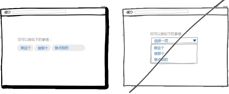 你使用的任何一個(gè)下拉框都會(huì)對(duì)用戶造成信息的隱藏而需要額外的操作才能顯示。如果這些信息是貫穿整個(gè)操作所必需的,那你最好把它展示出來做得更顯而易見一點(diǎn)。下拉框最好用在選擇日期,省份等約定俗成的地方。對(duì)于程序中重要的選項(xiàng)最好還是不要做成下拉形式。
